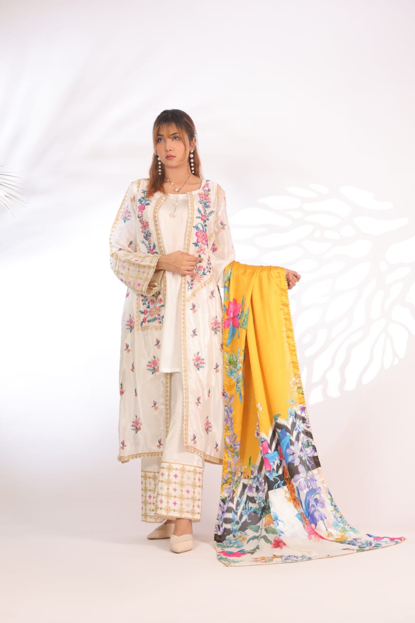 Shirt: Premium Silk with Intricate Tilla & Sequence Embroidery